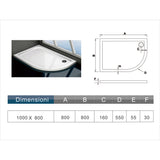 Aica 80X100cm Box Doccia Semicircolare Scorrevole In Alluminio Elettroforesi Vetro Temperato Trasparente R