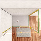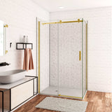 Box Doccia Angolare H.195 cm Porta Scorrevole con Parete Fissa Vetro 8 mm Temperato Anticalcare Trasparente Telaio Cromo Dorato