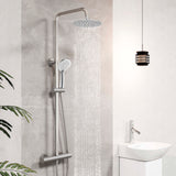 Sistema doccia AICA con miscelatore termostatico e soffione in acciaio inox da 20 cm di diametro, regolabile in altezza, color cromo.